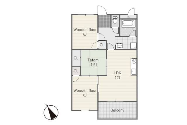 | 間取り | 3LDK (和室4.5畳、洋室6畳、洋室6畳) | ||